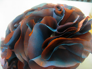 One of the pomanders to go at the end of each pew row. I bought the beautiful two-toned fabric from Fabricana on Etsy.